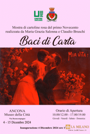 Ancona: “Baci di Carta”, una mostra di cartoline d’amore al Museo della Città. Ha preso il via mercoledì 4 dicembre, la mostra Baci di carta, cartoline rosa del primo Novecento, realizzata da Maria Grazia Salonna e Claudio Bruschi, con l’organizzazione dell’Unitre di Ancona e il patrocinio del Comune. Baci di Carta mette in mostra una […]